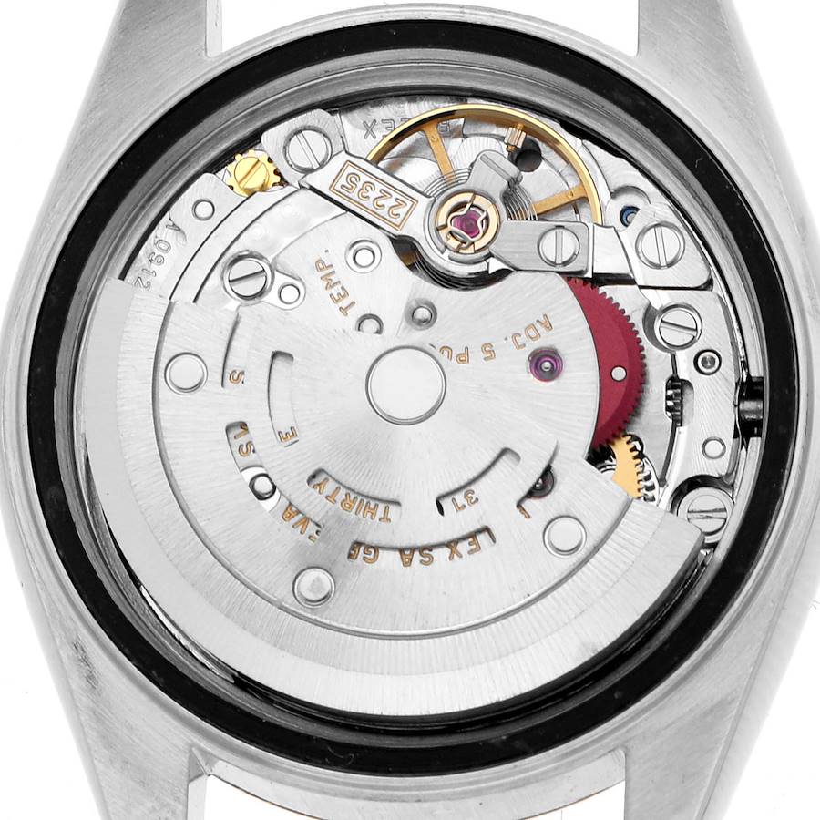 Boitier: Boitier Oyster en acier inoxydable de 26.0 mm de diametre. Logo Rolex sur la couronne en or jaune 18K.
